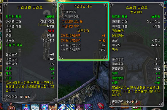 제작된 장비에는 세트 효과가 부여되며, 각 직업마다 고유의 능력치가 부여된다.