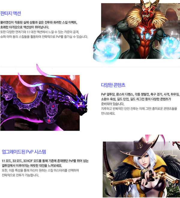 โ๋ผํโ๋ ์ค์ ์ํฉ๊ณผ ๊ฐ์ ์ ํฌ์ ํ๋ คํ ์คํฌ ์ดํํธ, ํธ์พํ ํ๊ฒฉ๊ฐ์ผ๋ก ์ก์ ์ฑ์ ๊ฐ์กฐํ์๊ณ ๋ค์ํ ์คํฌ์ ์ฐ๊ณ๊ธฐ๋ฅผ ์ด์ฉํ ์ ๋ต์ PvP, 1:1, 3:3, 3:3 KOF๋ชจ๋๋ฅผ ํตํด ๊ธฐ์กด ์กด์ฌํ๋ PvP๋ฅผ ๋ฐ์ด๋๋ ๊ฒฐํฌ์ฅ์์์ ์ง๋ฆฟํ ๋์ ์ ๋๋ ์ ์๋ค. ๋ํ, ์ด์ค ํน์ฑ์ ํตํด ์์ ์ด ์ํ๋ ์คํฌ๋ง์คํฐ๋ฆฌ๋ฅผ ์ ํํ์ฌ ๋ณด๋ค ์ ๋ต์ ์ธ ์ ํฌ๊ฐ ๊ฐ๋ฅํ๋ค.