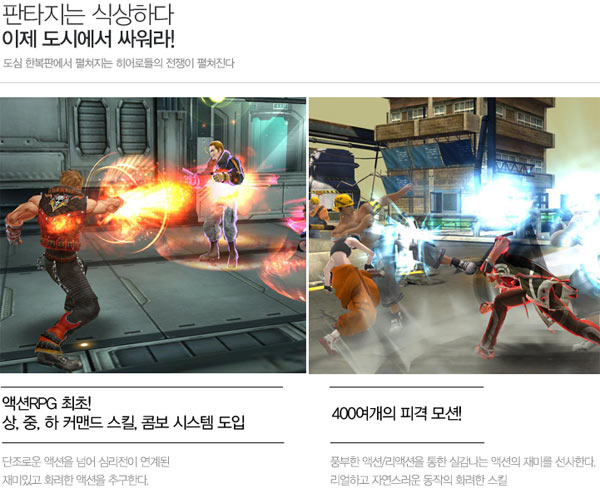 ‘히어로’는 실전액션과 판타지액션이 접목하여 기존 액션RPG에서 볼 수 없었던 “익스트림 액션”이라는 새로운 장르를 표방하고 도심 한복판에서 펼쳐지는 히어로들의 화려한 액션을 경험할 수 있다.