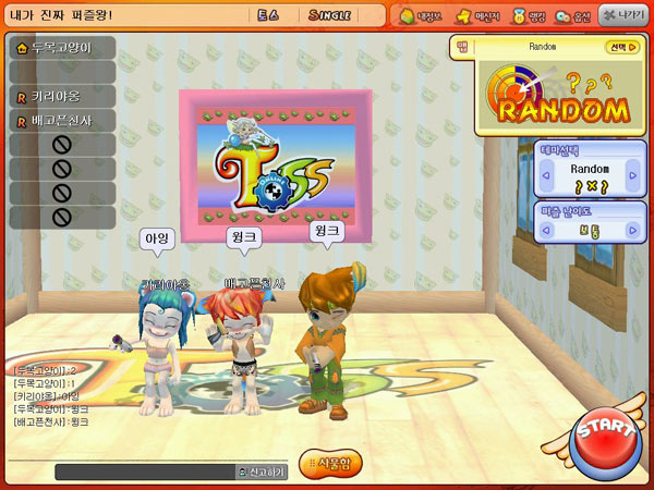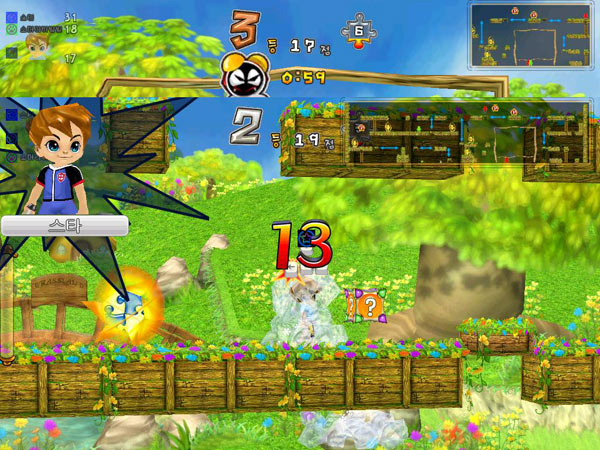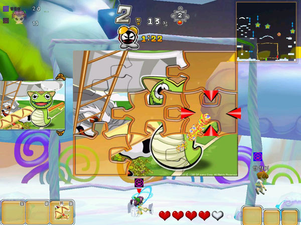 다른 사람보다 더 많은 퍼즐을 모으기 위해서 빠른 속도로 블록 사이를 오가는 컨트롤이 가장 중요한 요소이다. 달리고, 뛰어넘고, 기어 오르는 컨트롤의 극한 즐거움!! 이것이 토스 온라인의 즐거움이다.