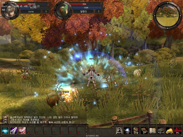 1:N 전투 시스템을 채택하고 있는 Memory of Aria는 빠른 전투를 진행하기 위하여 몬스터 클릭 방식이 아닌 넌클릭 방식을 이용한 전투를 제공하고 있다.
