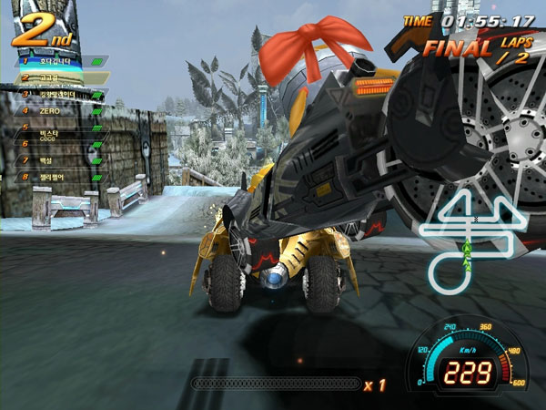 또 엔진 브레이크가 잡히지 않는 급격한 ‘다운힐’, 점프 중에 다른 차량에 충돌을 가할 수 있는 ‘고공점프’, 원심력에 의해 최대 720도까지 회전할 수 있는 ‘롤러 코스터’ 등 물리 엔진의 최적화된 구현으로 전략적인 레이싱도 즐길 수 있다.