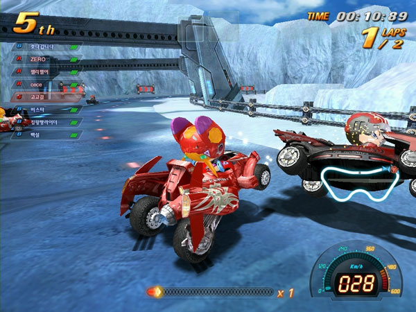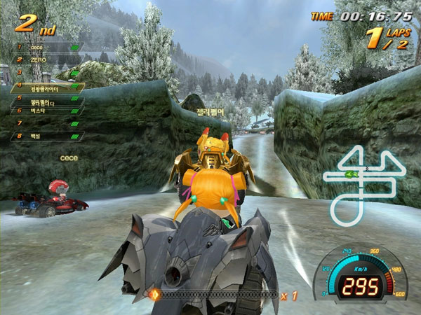 특히 레이싱에 영향을 주는 독특한 캐릭터, 차량별 각기 다른 주행 특성과 더불어, ‘잔디밭’, ‘얼음길’, ‘돌길’ 등과 같이 실제적인 지형 특성이 잘 구현돼 색다른 레이싱의 재미를 느낄 수 있다.