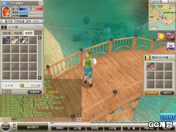 집에서 낚싯대를 던져 놓고 집안 청소를 하거나, 웹서핑을 하고 있어도 알람시계가 아침 잠을 깨우듯 내가 원하는 사운드로 물고기가 입질을 하고 있다고 알려주는 고마운 시스템으로 언제든지 일과 게임의 병행이 가능하다. 좀더 긴 시간 자리를 비울 땐 “일타이피”를 할 수 있는 쌍물고기 버프를 활용한다.