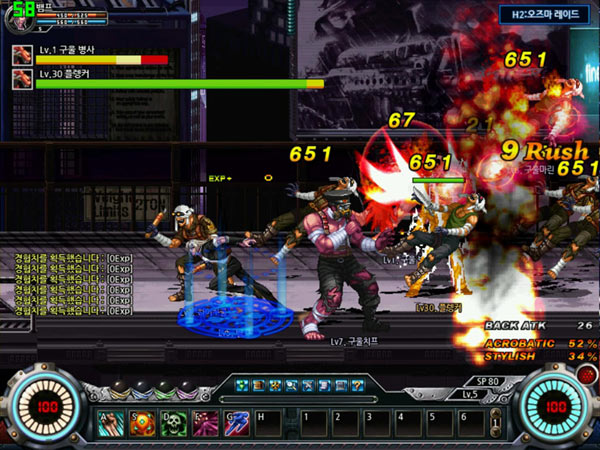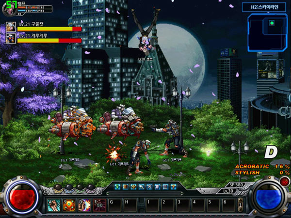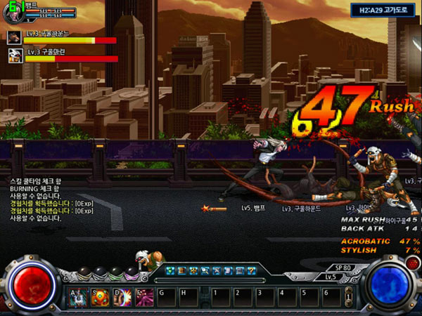 뱀프, 검사, 메카닉 등의 다양한 스타일의 캐릭터를 선택하여 플레이할 수 있으며, 하이퍼 에어다운 / 플래시 체인지 스킬 / 매직 블릿 등의 각 캐릭터별 호쾌한 스킬을 사용할 수 있다.