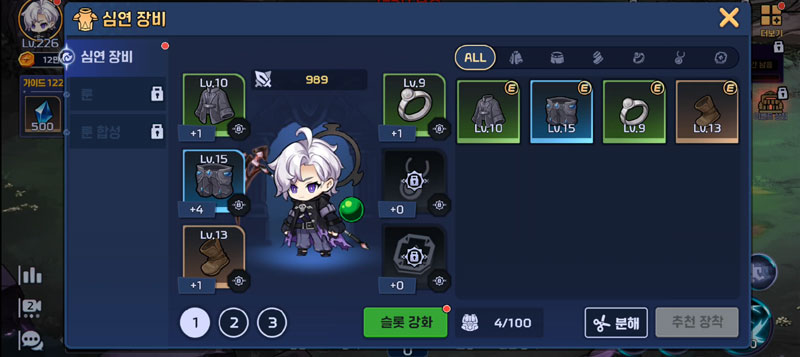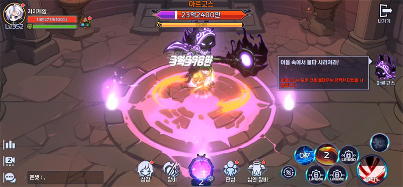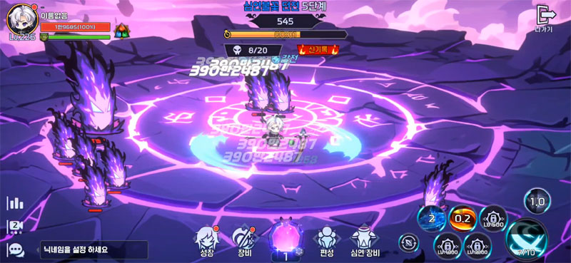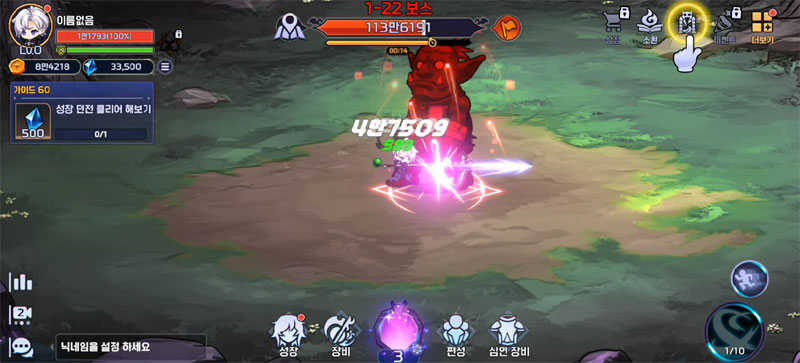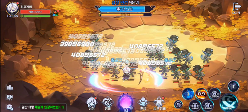 장비 파밍과 룬 장착으로 특별한 효과를 얻으며, 캐릭터를 단계적으로 강화해 나간다.