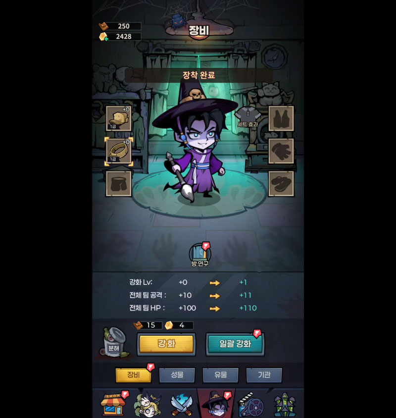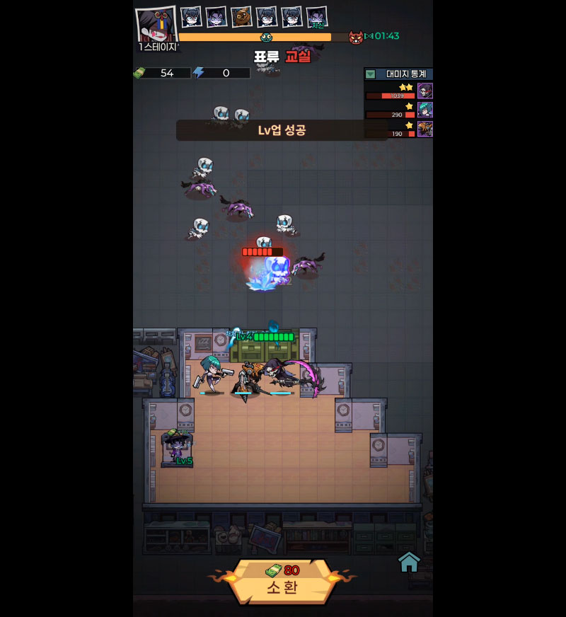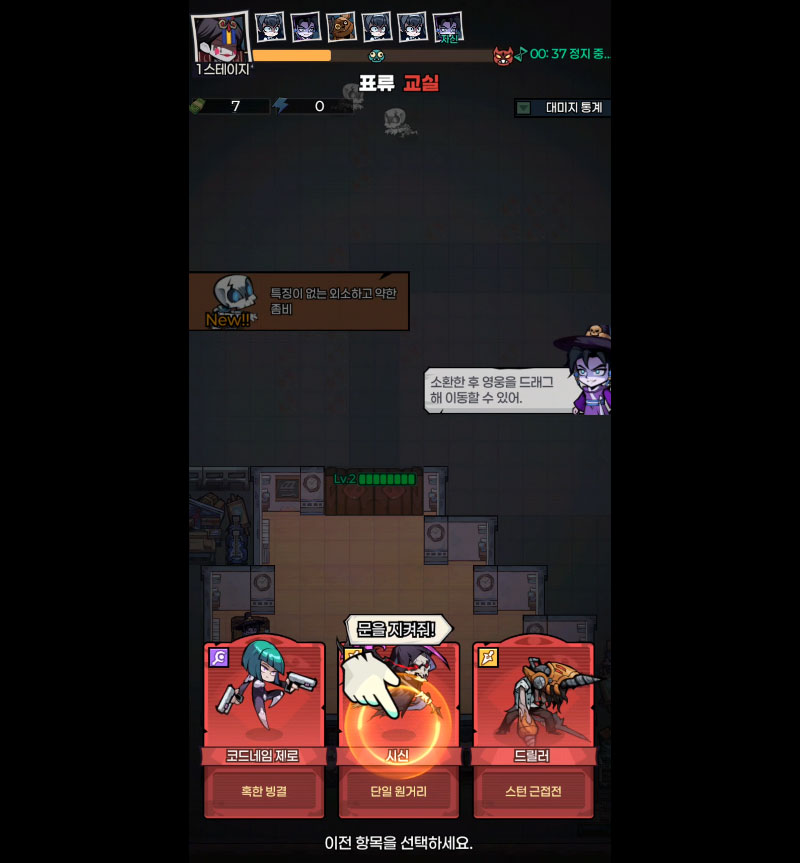방을 선택하고 문을 잠근 뒤, 침대에 누워 레벨업하며 버텨내는