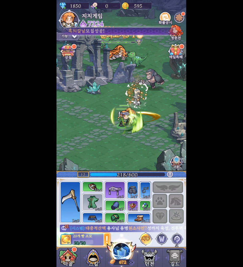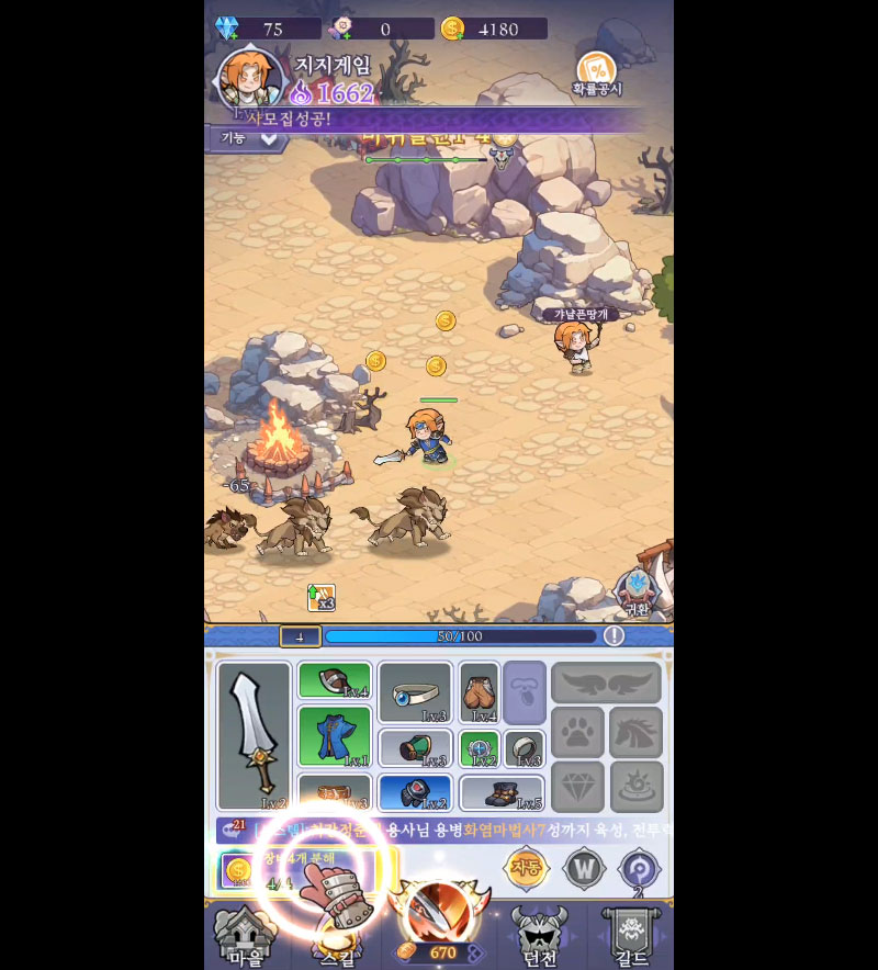 접속하지 않아도 영웅은 계속 싸우고, 장비는 끝없이 드롭됩니다.