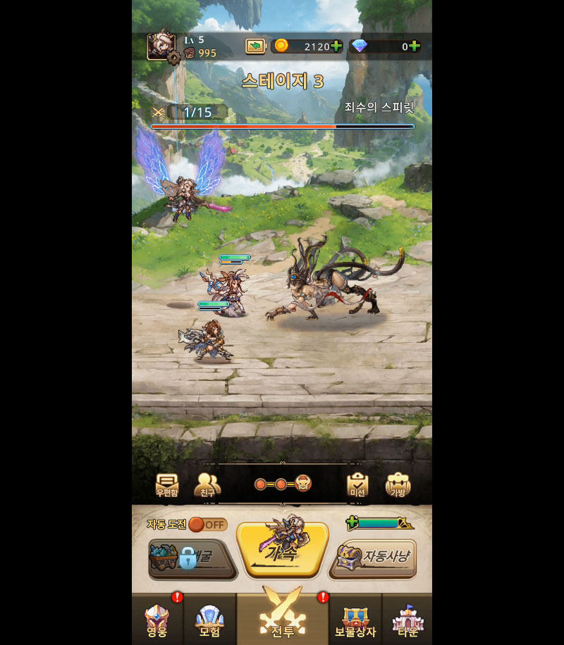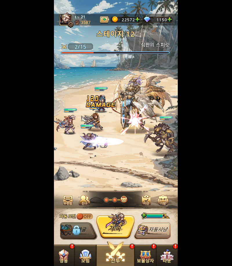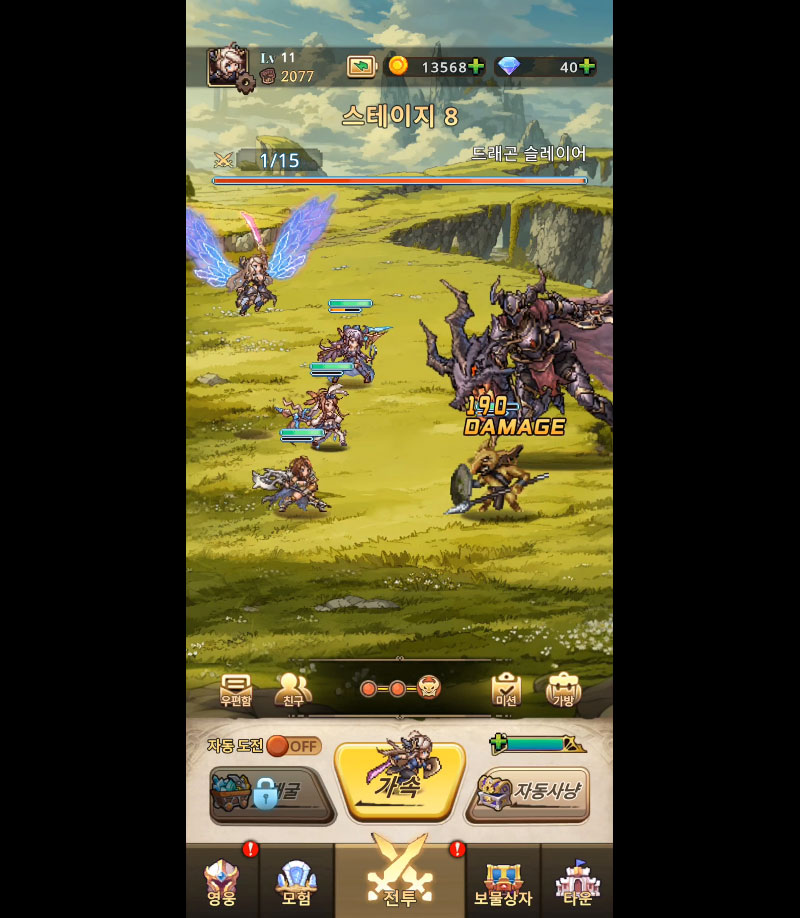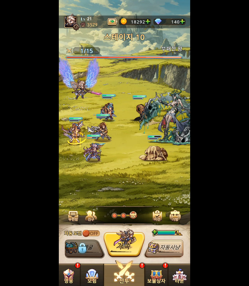 속성, 직업, 진영이 다른 영웅들을 조합해 전열·후열 배치, 스킬 연계, 상성 효과를 고려한 깊이 있는 전략 전투를 즐길 수 있습니다.