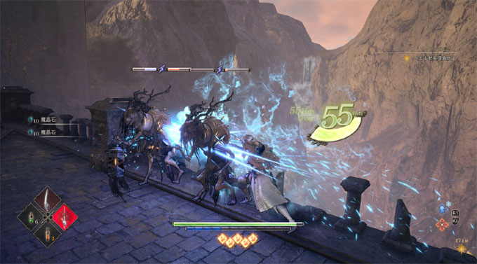 소울 체인을 이용한 빠른 이동과 하이 템포 액션으로 상쾌한 전투 감각