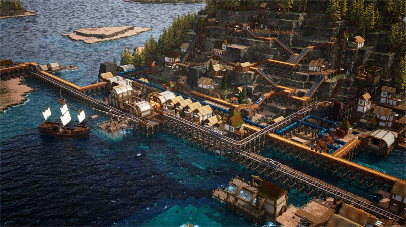 배를 만들어 주변 섬과 망망대해를 탐사하세요. 해적과 교역, 원자재 확보를 통해 보급선과 무역망을 확장할 수 있습니다.