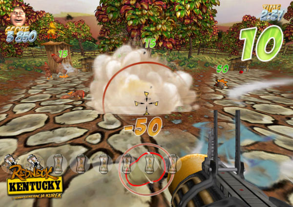 레드넥 켄터키는 농장을 배경으로 걸어다니거나 날아다니는 닭들을 사냥하는 매우 심플한 내용의 1인칭 시점의 건슈팅 게임이다.