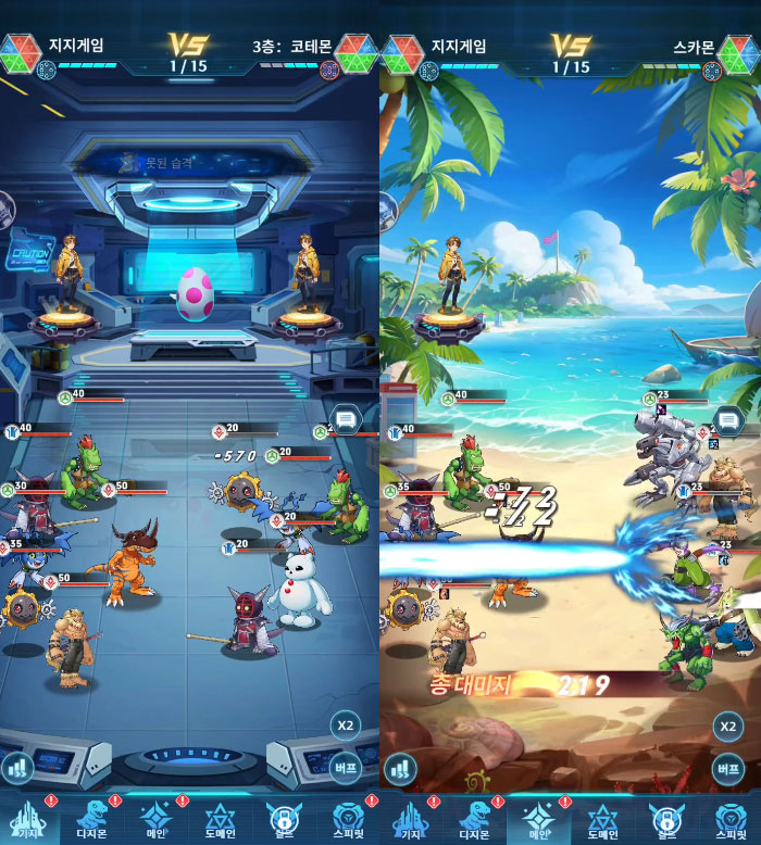 디지바이스를 작동시켜 다양한 디지몬을 소환하고, 커스텀 특성과 아머로 자신만의 파티를 만들며 전략적 전장에서 궁극기를 방출하세요!