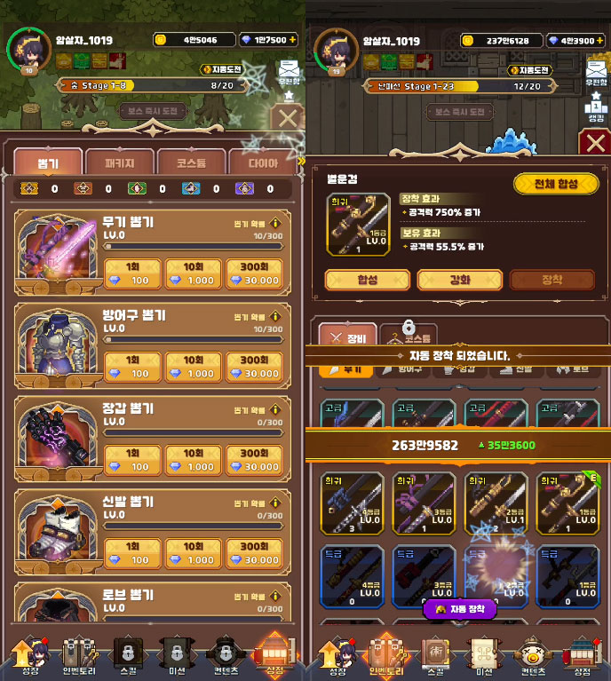 우편함 가득한 장비와 자원으로 매일 강해지는 캐릭터
