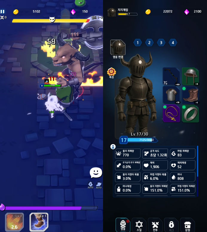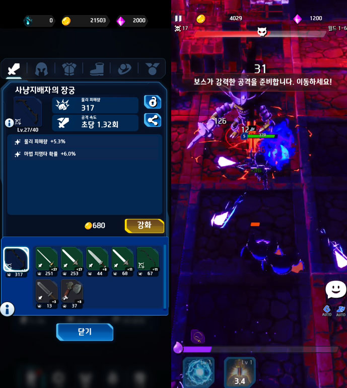 자동 전투와 전략 스킬 조합으로 손쉽게 즐기고, 강력한 보스전은 직접 컨트롤(자동가능)로 제압하라!