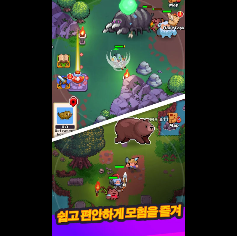 던전 속 위험을 헤쳐 나가며 보스에 도전하고, 나만의 영웅의 집을 꾸미며 도시를 성장시킬 수 있습니다. 간편한 조작으로 누구나 즐길 수 있는 탐험과 건설, 전략 전투의 재미! 지금 전설적인 여정을 시작해보세요.