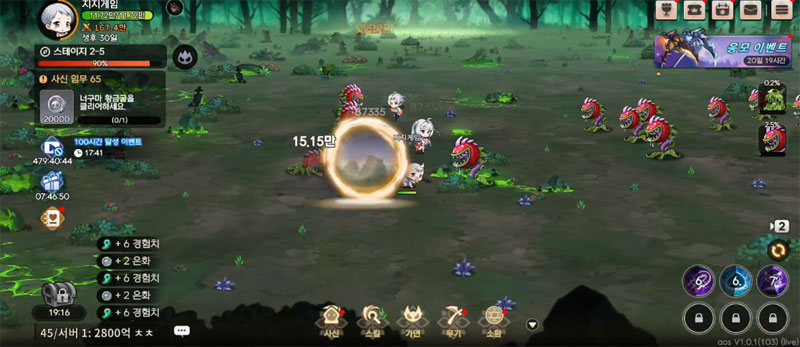 방치가 지루하다면 어둠숲에서 전략적 전투를 즐기세요.