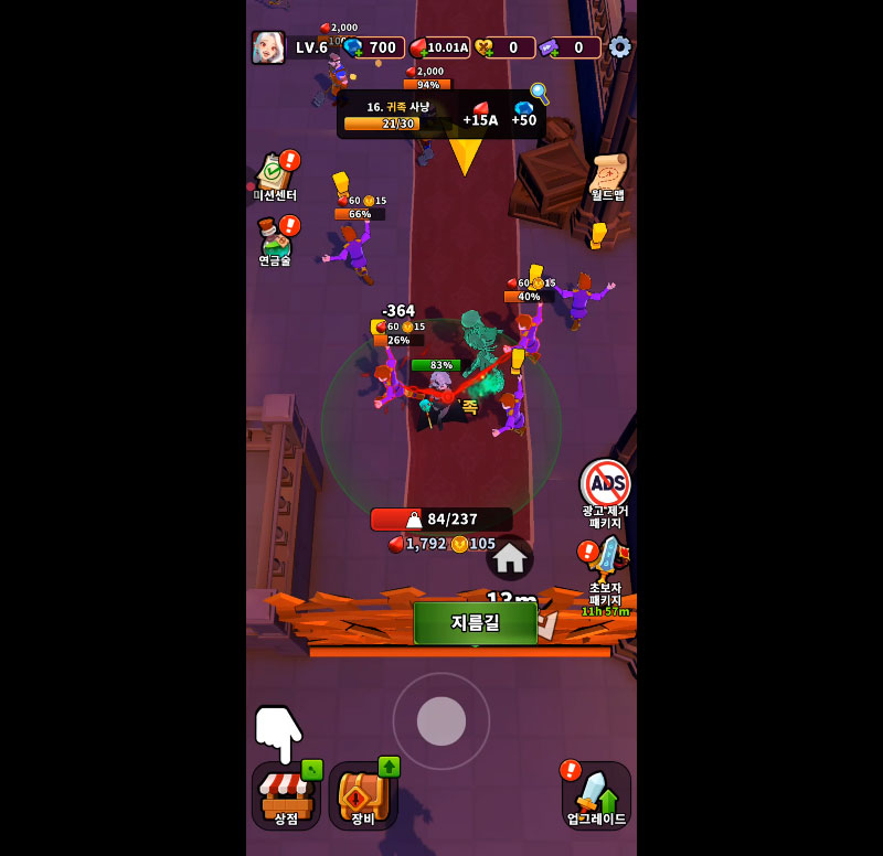 마법의 성에 몰려드는 인간 무리를 처치하고, 피의 제단에 피를 바쳐 어둠의 힘을 키우세요.