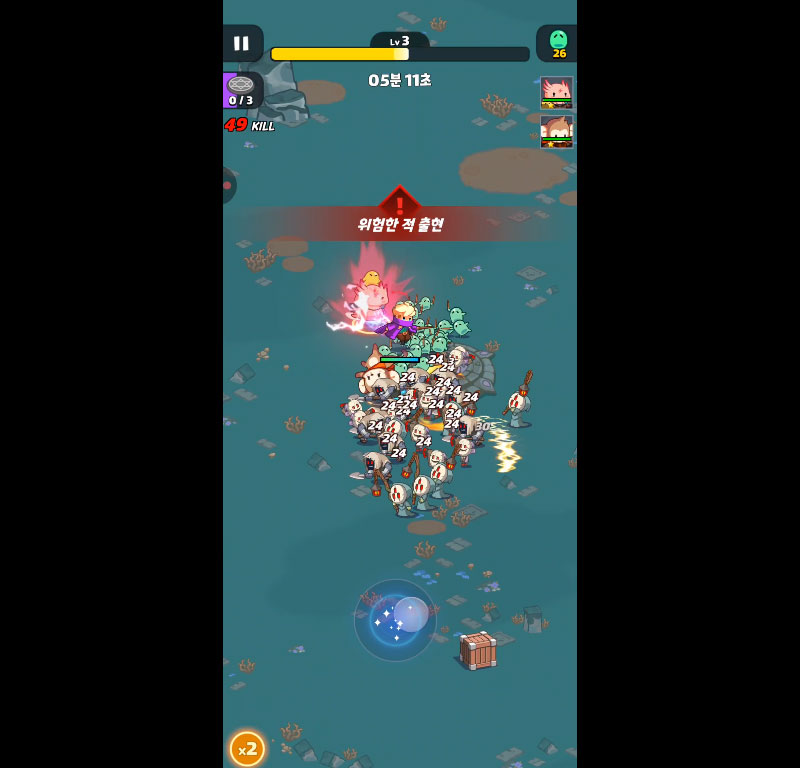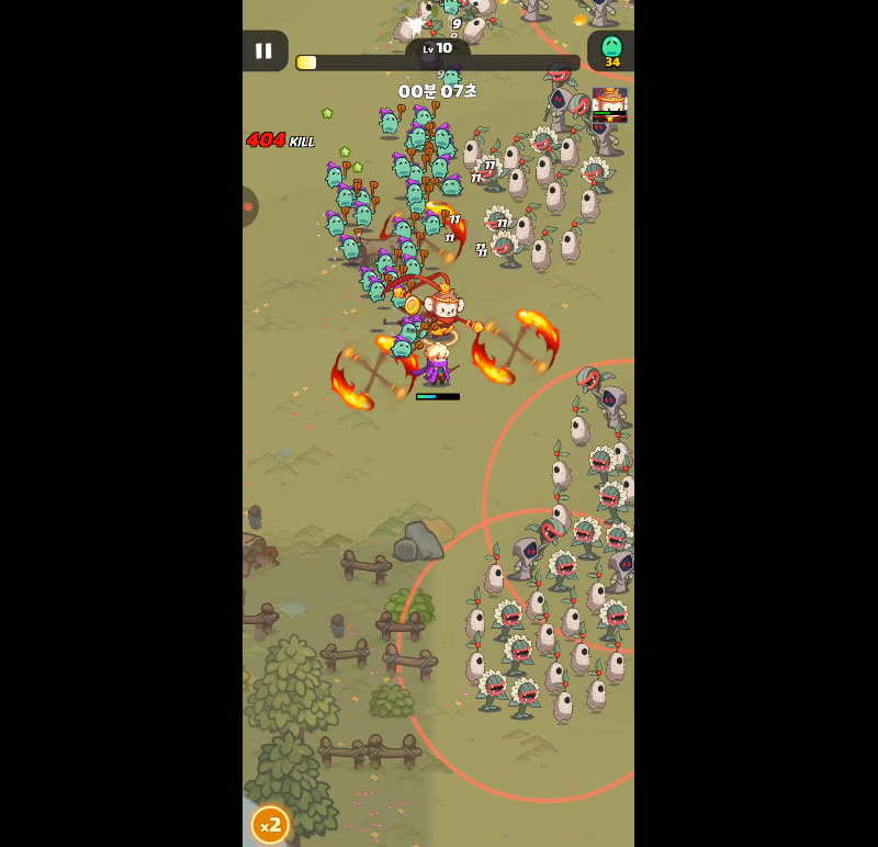 자원 수집, 장비 강화, 능력 선택으로 끝없는 성장 가능