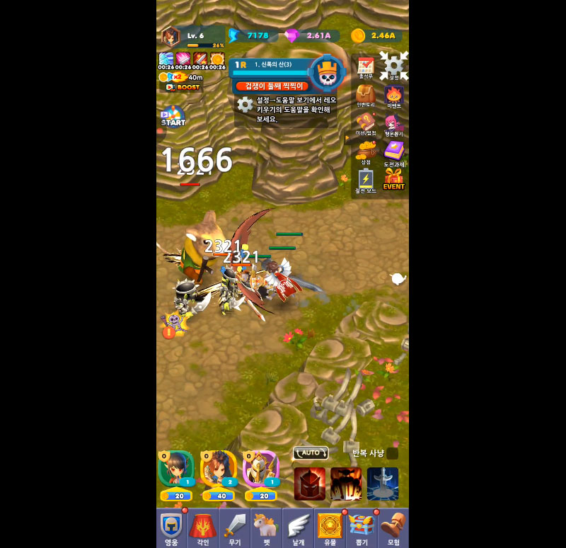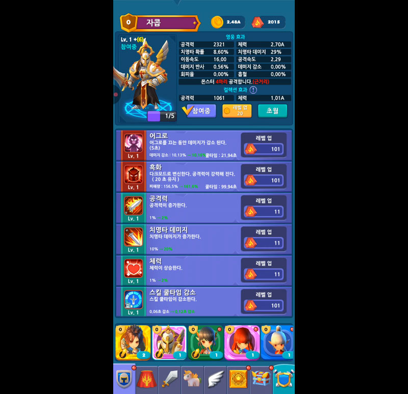 다수의 영웅을 키워 자동 전투에 전략성 더하기