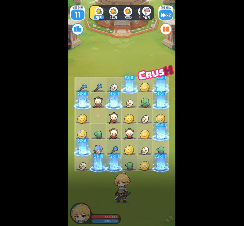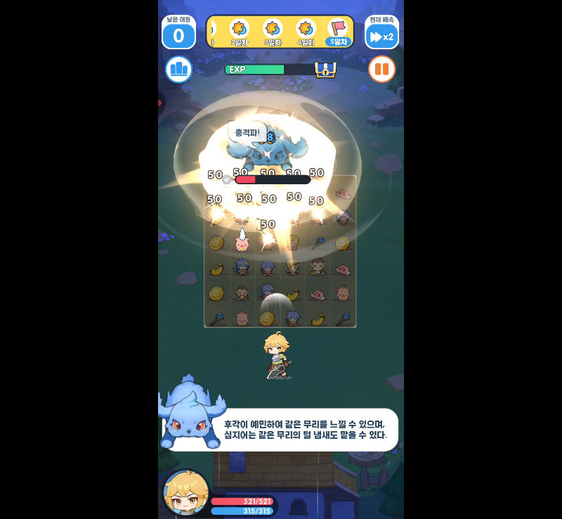 퍼즐 판 위에서 파트너를 합성, 진화와 콤보의 손맛