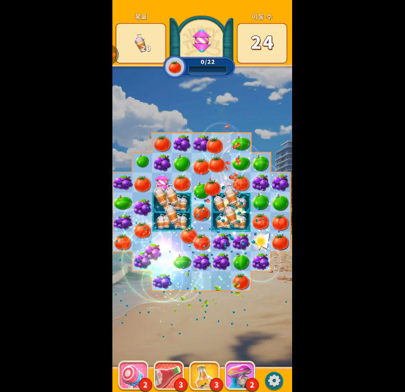 같은 색 블록을 3개 이상 매치해 퍼즐을 터트리고, 클리어한 별로 쥬스를 만들어 다양한 손님의 주문을 완성하세요!