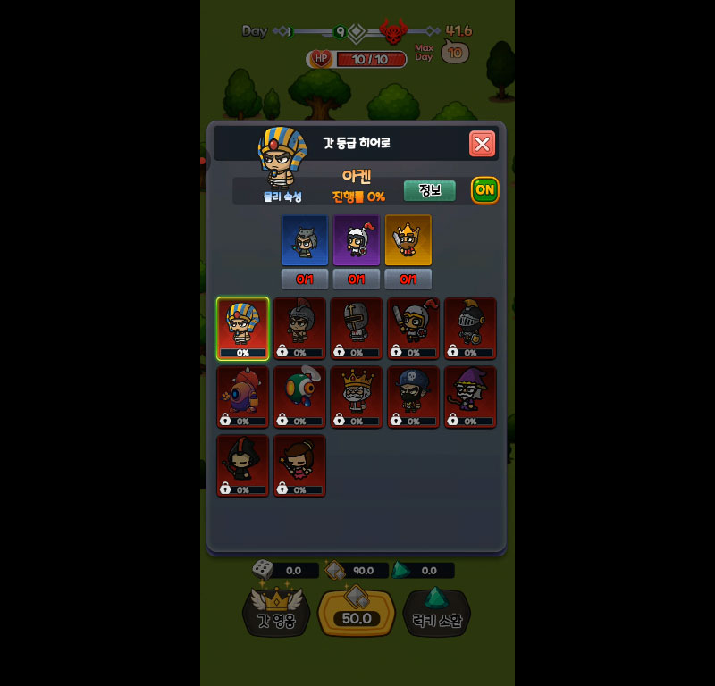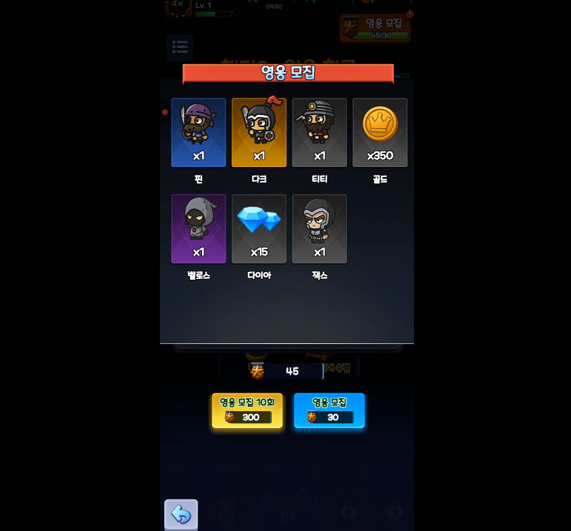 일반부터 갓 등급까지, 각기 다른 능력의 영웅을 랜덤으로 획득! 특별한 조합으로 전설을 넘어선 갓 캐릭터를 소환해보세요.
