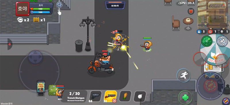 리틀 로얄: 미니 배틀 로얄은 귀여운 미니 히어로들이 동남아 감성의 무기를 들고 펼치는 빠르고 짜릿한 탑다운 멀티플레이어 슈팅 게임입니다. 두리안, 모기채, 물총 같은 독특한 무기를 활용해 데스매치, 깃발 쟁탈전, 팀 배틀 등 다양한 모드에서 전 세계 플레이어와 실력을 겨뤄보세요. 아기자기한 비주얼 속에서도 치열한 전략과 순간 판단력이 승부를 가릅니다.