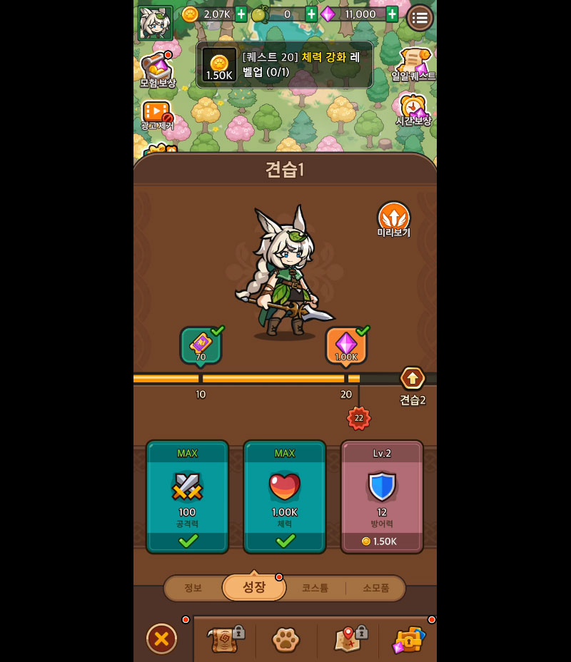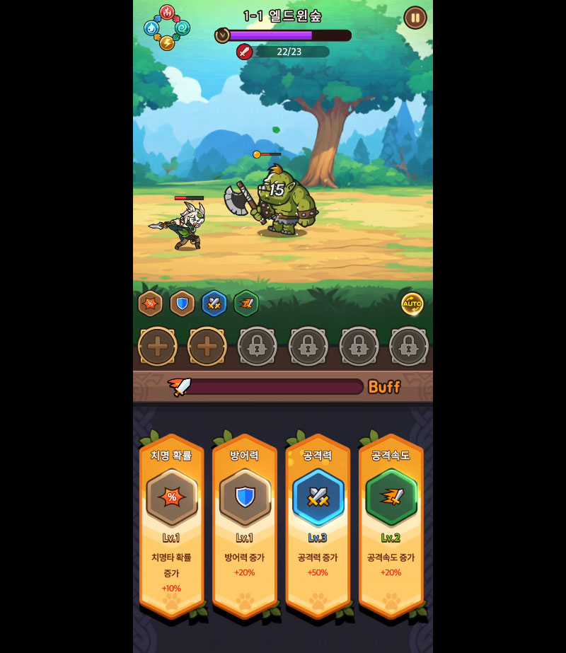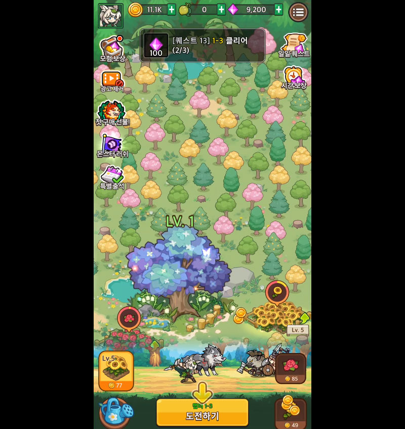 세계수를 키우고 숲을 확장하면서 새로운 스킬, 동료, 시설이 해금됩니다.