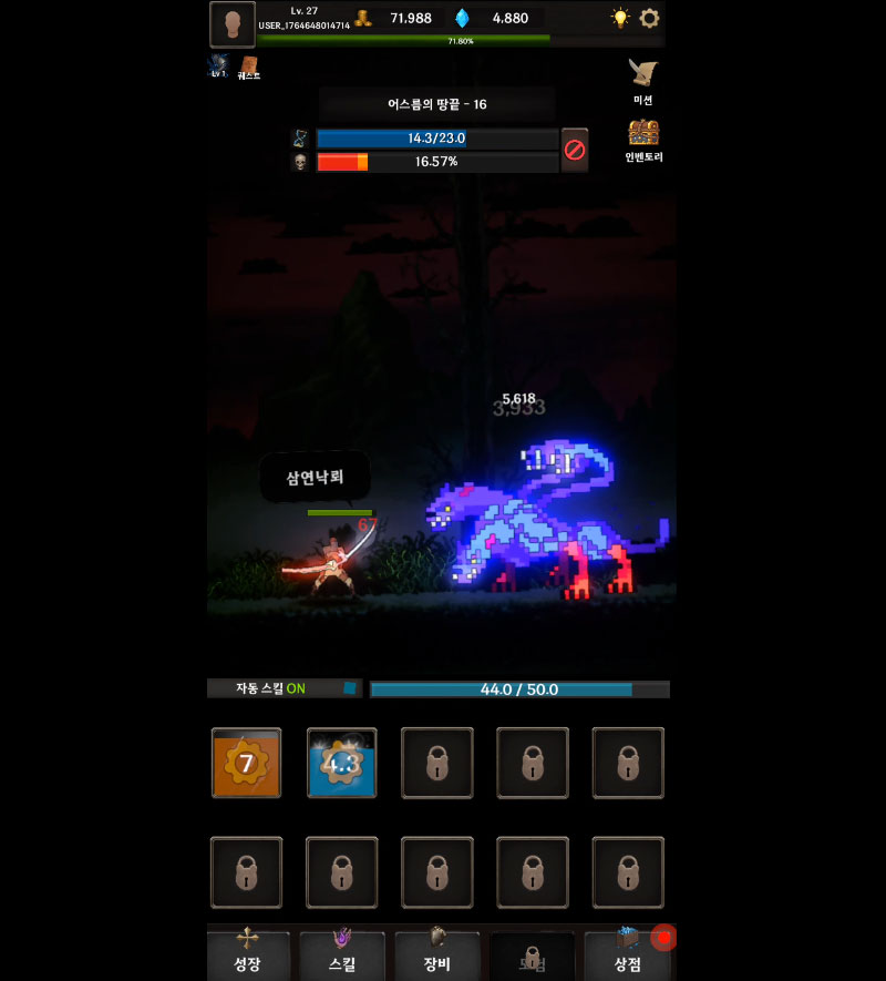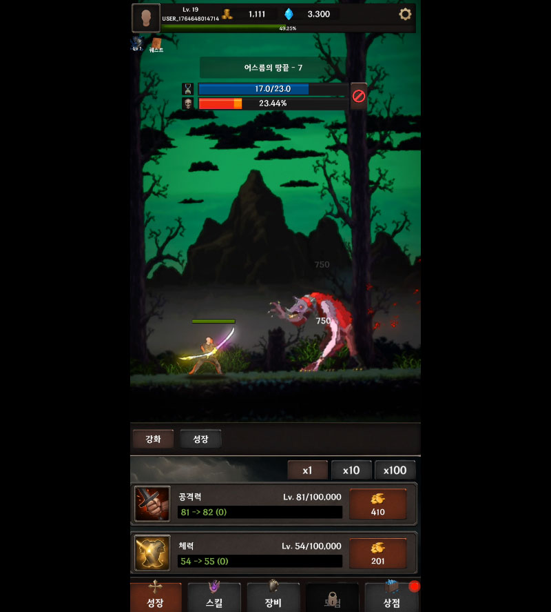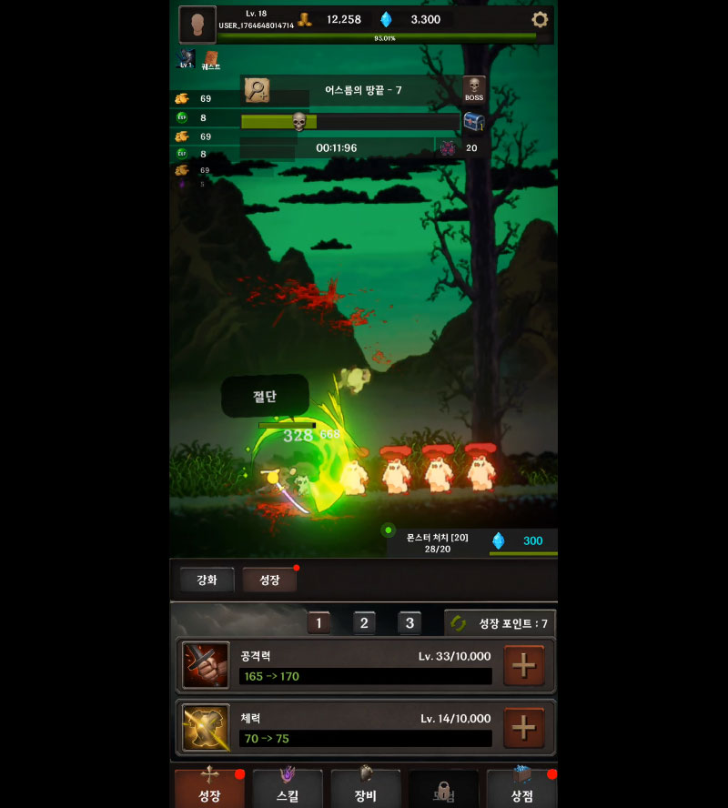 스킬 연계, 타격감, 보스 패턴이 살아 있는 자동 전투.