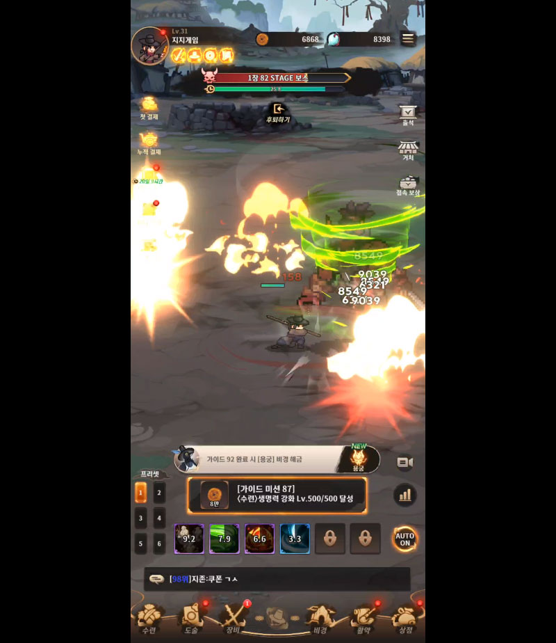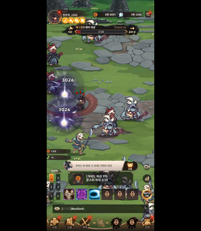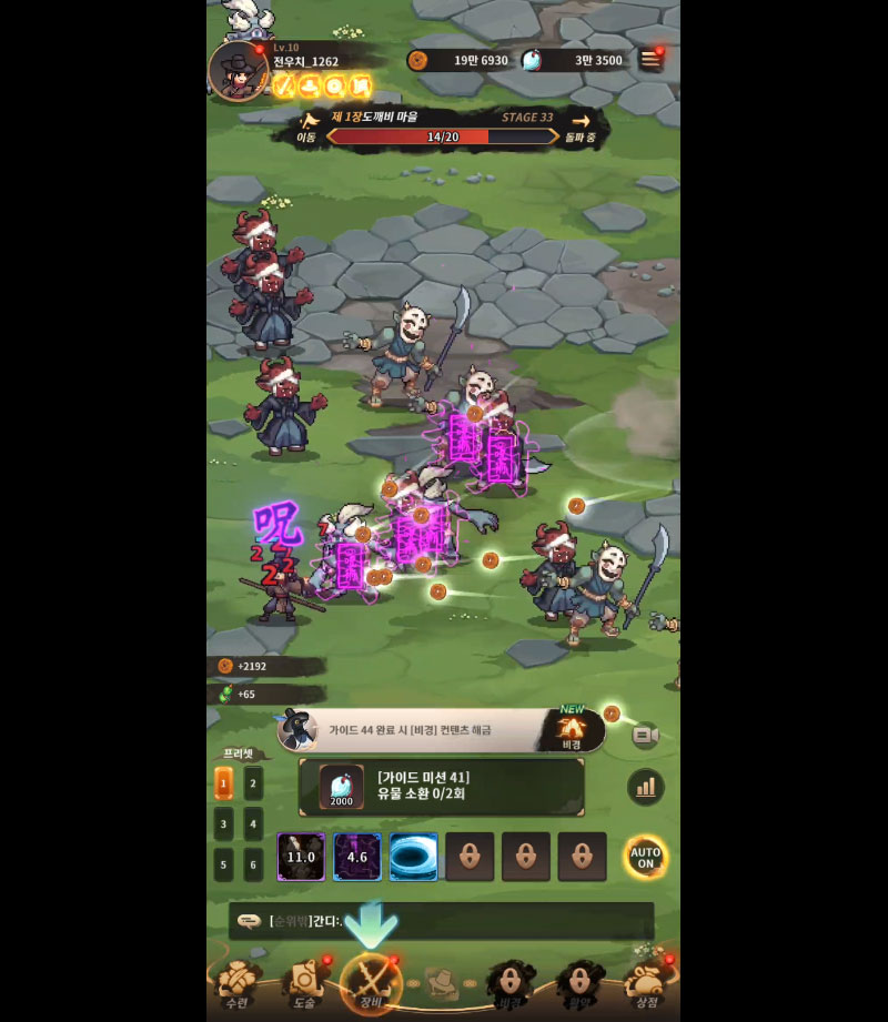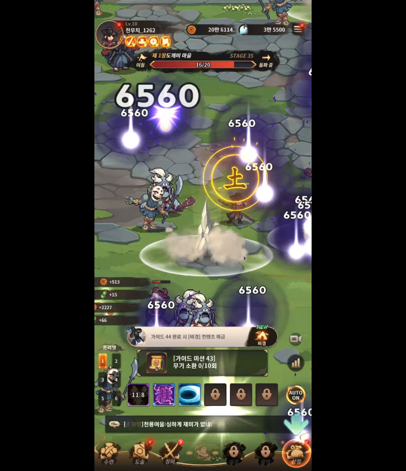 전우치가 자동으로 싸우며 손쉽게 성장하는 방치형 전투.