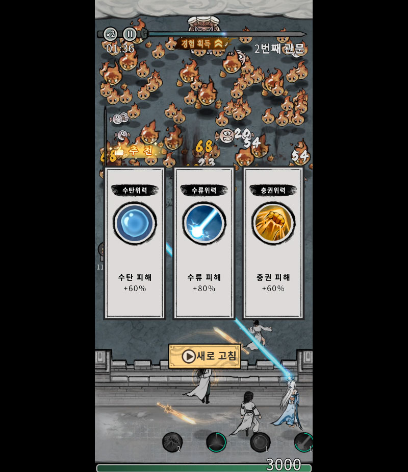 또한 전투 중에는 랜덤 스킬 효과가 발동되어 매번 다른 선택과 전략을 요구하며, 가볍지만 깊이 있는 로그라이크 요소로 긴장감을 더합니다.