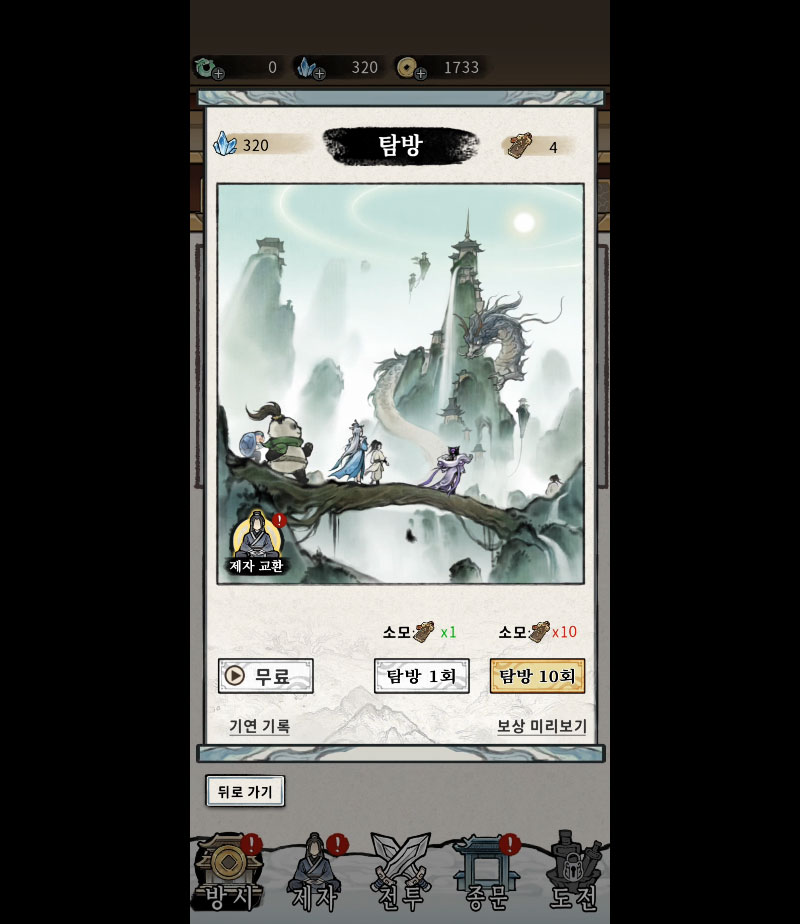 펫 시스템을 통해 제자와 함께 전투를 지원받고, 성장 재료를 수집하며 전력을 강화할 수도 있습니다.
