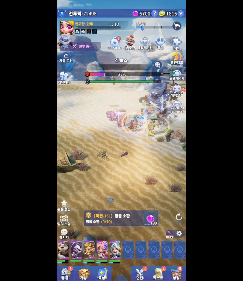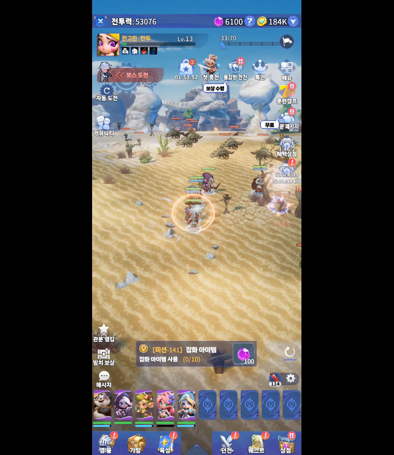 전투에서는 영웅 조합과 배치가 중요한 전략 요소로 작용합니다. 상황에 맞춰 팀 구성을 바꾸고 포지션을 조정하며, 다양한 전술로 전투를 유리하게 이끌 수 있습니다.
