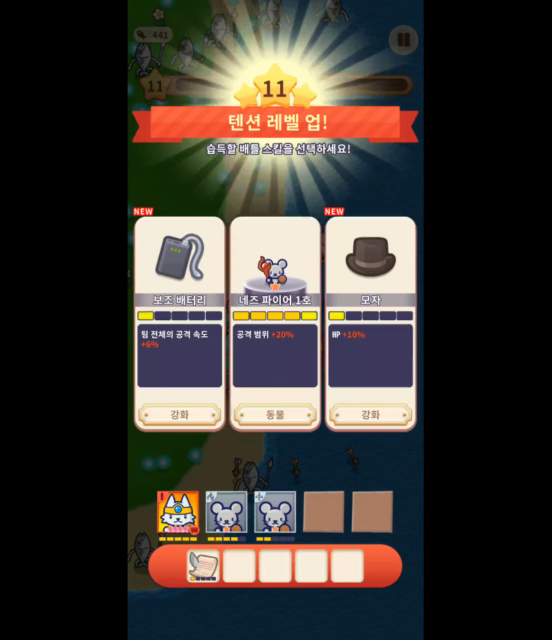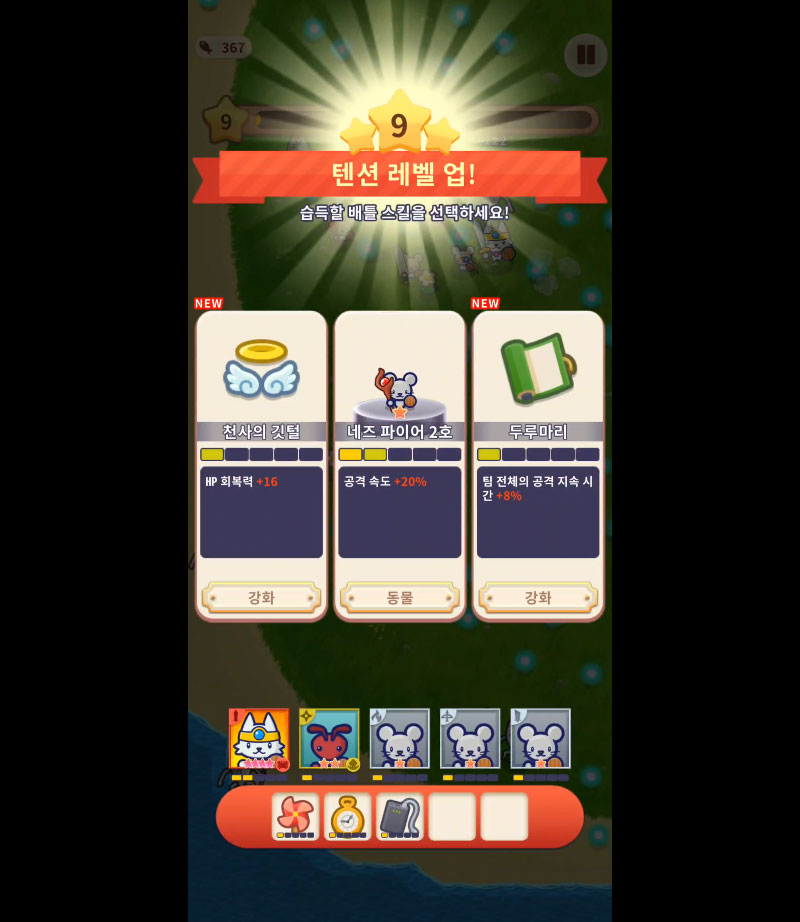 동물들의 개성 넘치는 스킬을 조합해 한 번에 적을 쓸어버려라!