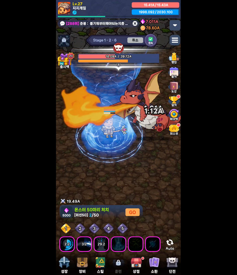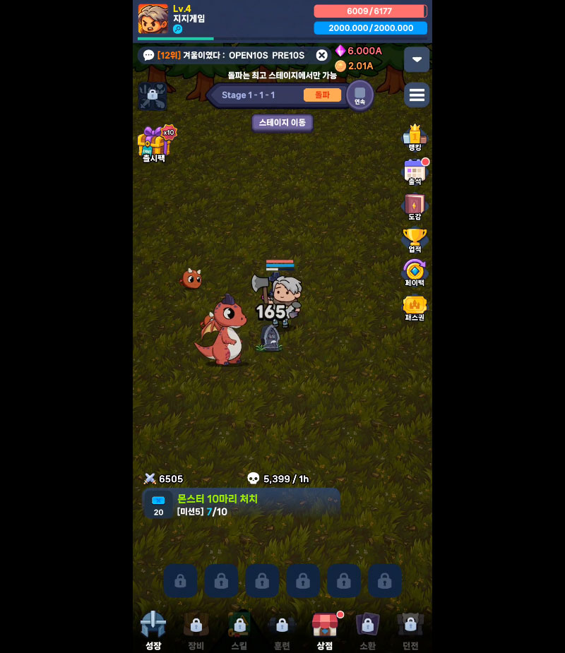 자동 전투 기반으로 부담 없이 플레이할 수 있으며, 오프라인 상태에서도 보상과 성장이 계속 이어집니다.