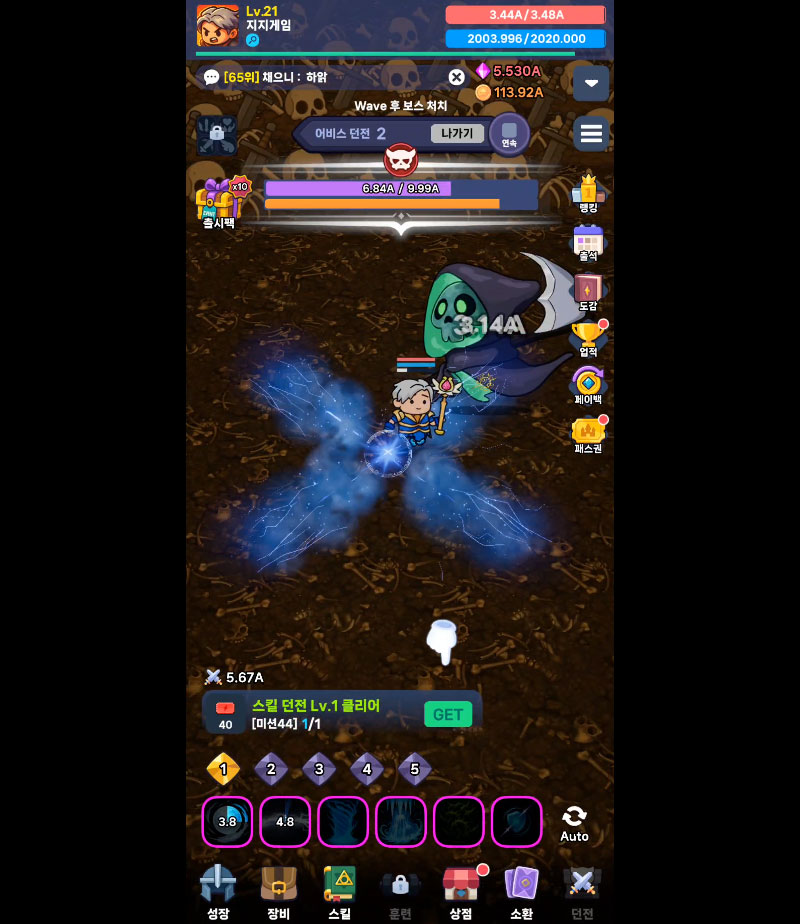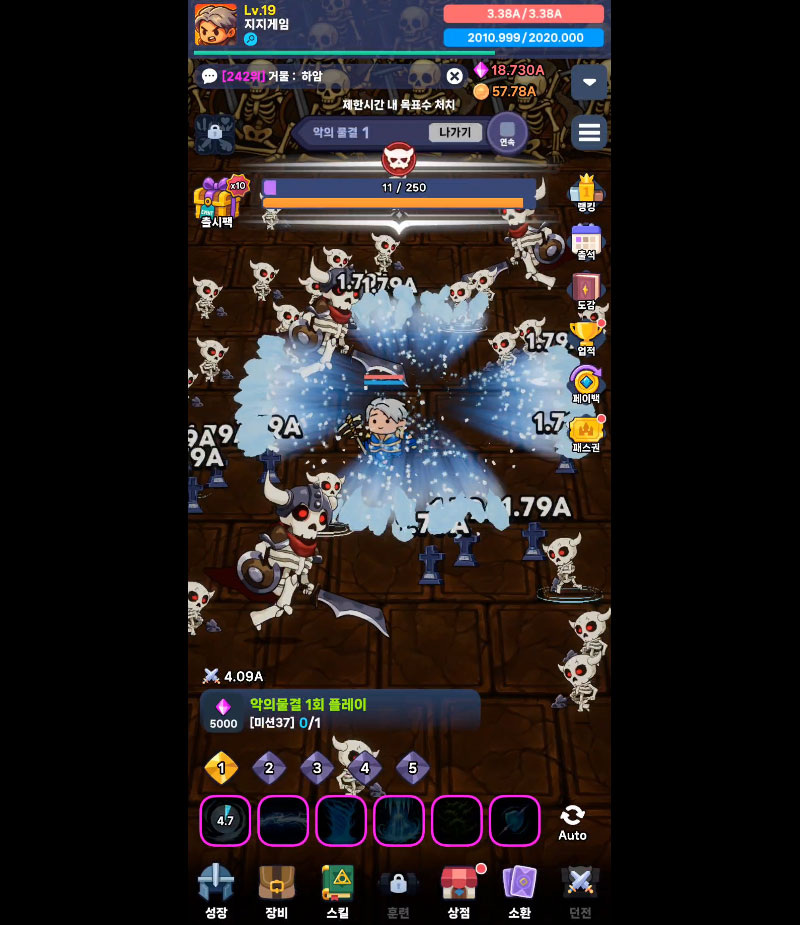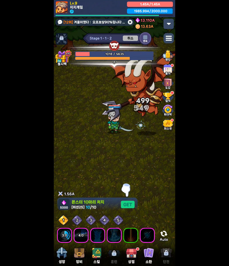 - 핵앤슬래시 액션과 방치형 시스템이 결합된 빠른 전투 템포