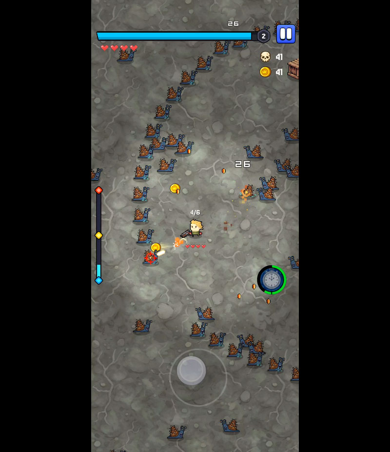 Crazy Gunner는 단 5분 동안 몰려오는 수천 마리의 적을 상대로 살아남아야 하는 픽셀 로그라이크 서바이벌 슈팅 게임입니다.