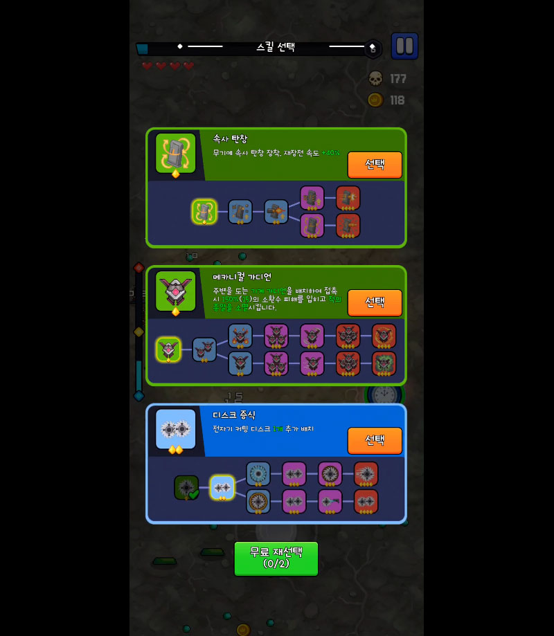 매 판마다 무작위로 등장하는 스킬과 무기 조합, 그리고 두 갈래로 진화하는 더블 분기 스킬 시스템을 통해 동일한 전투는 단 한 번도 반복되지 않습니다.