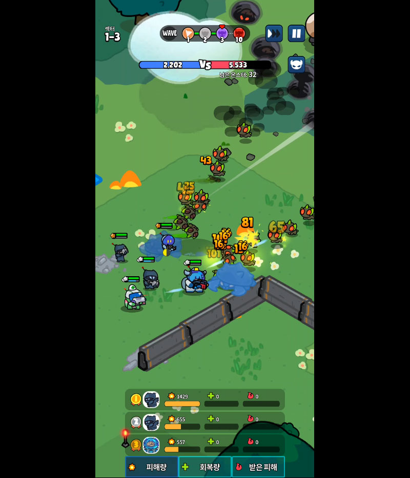 - 단순 방치가 아닌 실시간 전략 디펜스
