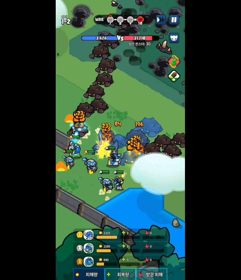 - 끊임없이 몰려오는 적을 막아내는 긴장감