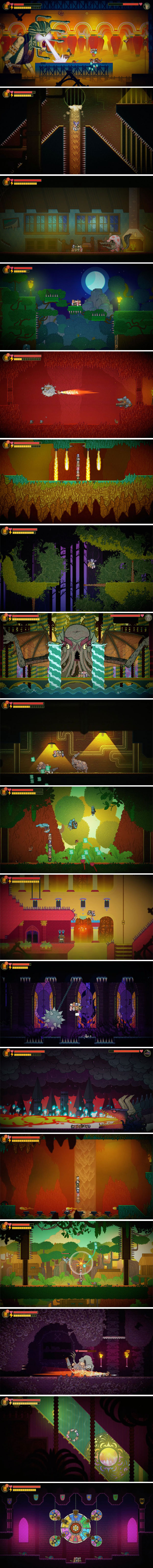 총 5개의 테마로 구성된 스테이지를 탐험하며, 흥미로우면서도 기괴한 몬스터들과 싸워나가며 새로운 스킬을 얻고, 이를 통해 신규 루트에 진입하는 방식으로 게임은 진행된다. 드라큘라는 2단 점프와 비행이 가능하고, 아서왕은 방패를 사용해 적의 공격을 막는 등 각 캐릭터의 개성을 반영하여 다양한 스킬을 활용할 수 있다.