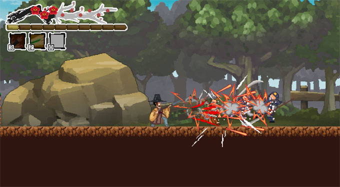 ‘문경새재’는 임진왜란이 끝난 조선시대를 배경으로 하는 한 2D 횡스크롤 액션 게임이다. 전쟁 이후 혼란에 빠진 나라를 바로잡고자 길을 떠난 선비의 이야기로 왜구나 산적, 괴물들과 싸우며 한양으로 향한다는 내용이다. 승자총통, 환도 등 조선 시대 실존 무기의 고증을 통한 구현과 액션 게임에서 접하기 힘든 조선시대를 상징하는 무기인 ‘활’ 중심의 스타일리시한 액션이 돋보이는 작품이다. 또한, 임진왜란 의병장 김세근 장군의 이야기 등 지역 설화를 바탕으로 한 고유의 스토리와 다양한 스테이지와 공격 동작 등은 게임의 재미를 한층 더하고 있다.