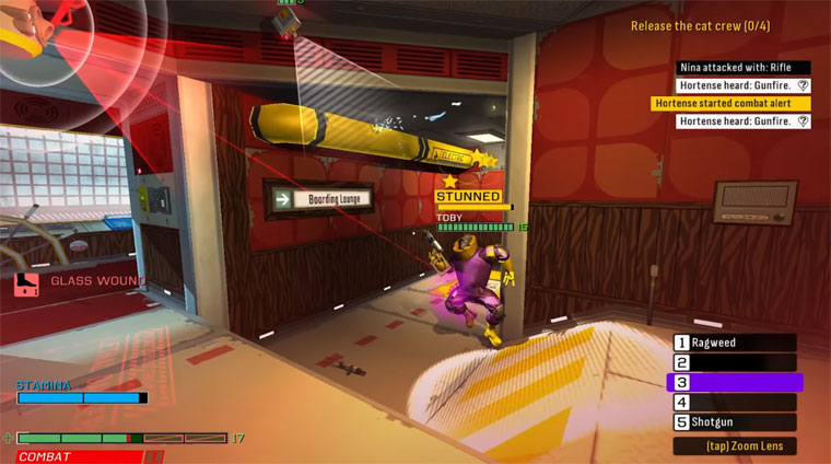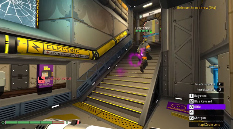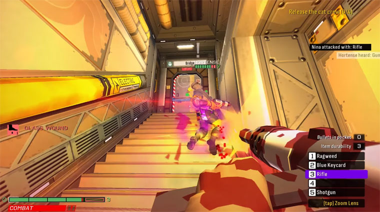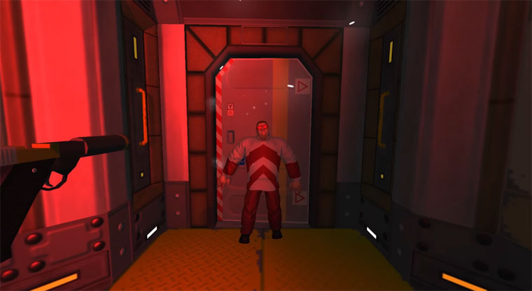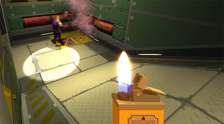 플레이어는 맨발로 우주선을 탐색하며, 재채기나 부상 같은 현실적인 요소를 고려해야 합니다.