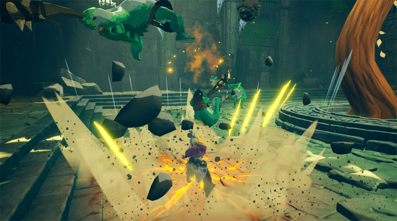 무너지는 기둥, 폭발하는 나무통, 회오리에 휘말린 적들—모든 전장이 파괴된다