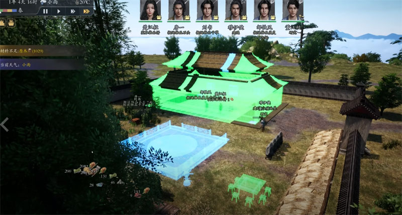 기초 시설부터 대전, 누각, 정자 등 다양한 건축물을 건설하고 문파의 거점과 방어 시설을 구축할 수 있습니다.