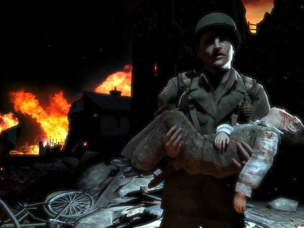 예로, 총격을 당해 쓰러지는 병사를 플레이어가 팔에 껴안는 씬. 이때 일시 슬로 모션이 되어 극적인 인상을 강하게 한다. 또한, 목적을 달성할 때와 마지막 일격을 더할 때에, 그 병사의 시점에 카메라가 이동해 보는 연출도 포함되어 있다.