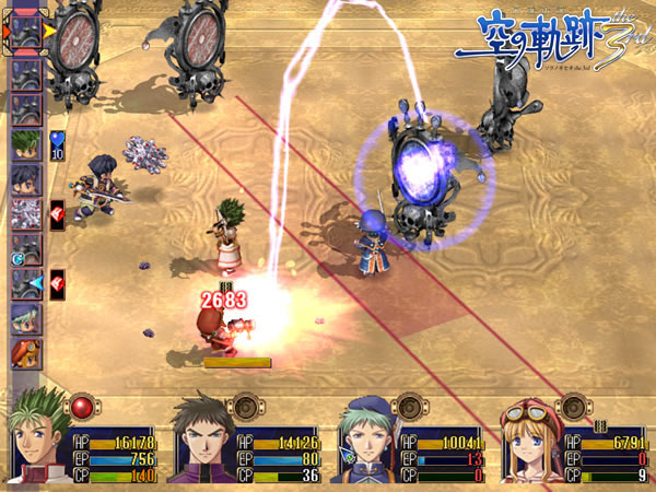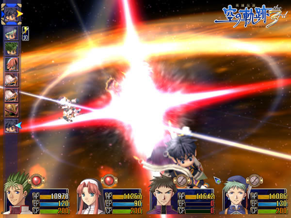 ▶플레이어의 전투 스타일에 맞추어 자유롭게 파티를 편성할 수 있다. 선택할 수 있는 파티 캐릭터는 「천공의 궤적」시리즈 최다! 렌, 리샤르, 뮐러가 새롭게 파티 캐릭터로 참가하여 S크레프트, 체인크라후트를 구사하여 보다 박진감 넘치는 전투를 즐길 수 있다!
