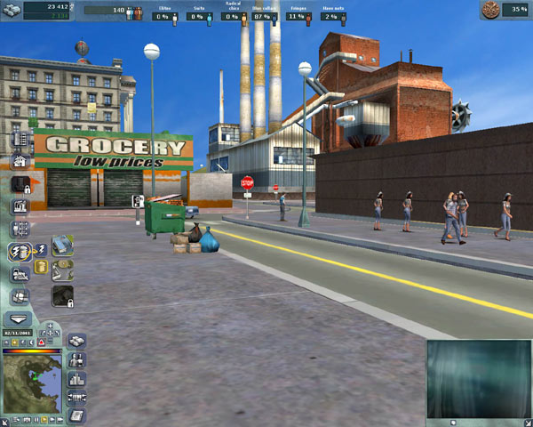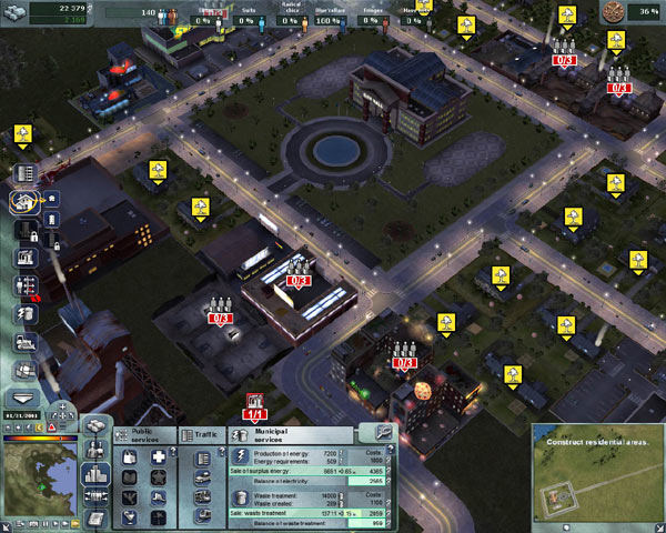 게임도중 많은 정보가 화면의 정보 윈도우에 표시되는데, 예를 들면 일이 부족하다든가 새로운 건물이 언락 되었다고 하는 정보가 실시간 변해간다.